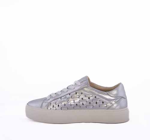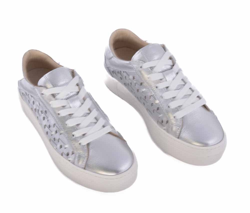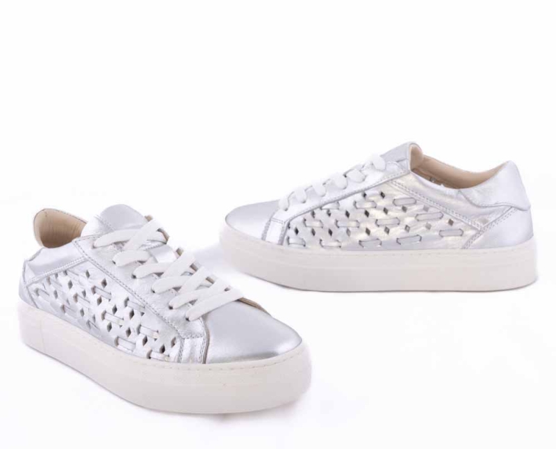 VOETTI Silver Woven Leather Platform Sneakers