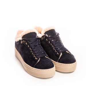VOETTI Pearl Chain Accent Beige Leather Sneakers