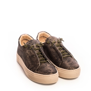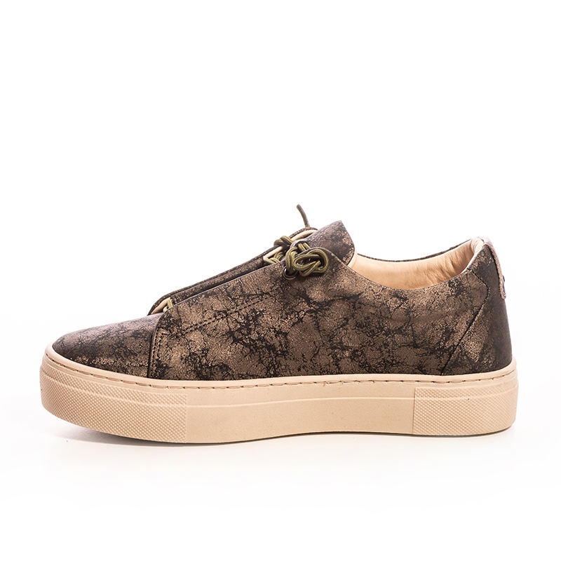 VOETTI Beige Snake Print Gold Stripes Rhinestones Sneakers