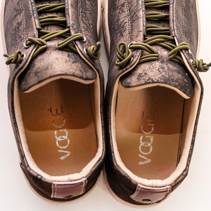 VOETTI Pearl Chain Accent Beige Leather Sneakers