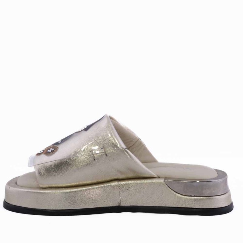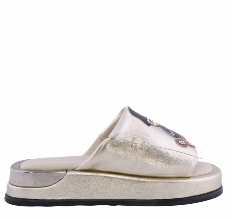 VOETTI Златен Дамски Чехъл от Естествена Кожа - Златист Комфорт!