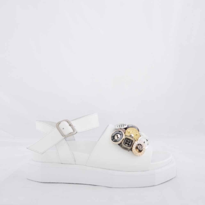 Начало SALE VOETTI сандали от естествена кожа с копчета - бели кожени сандали за лятото!