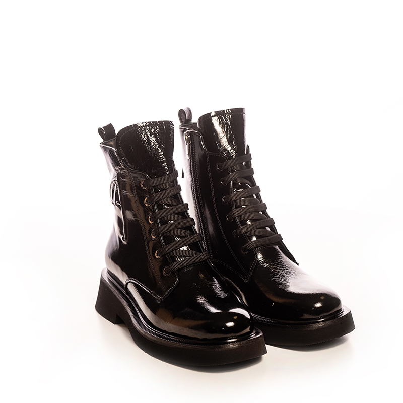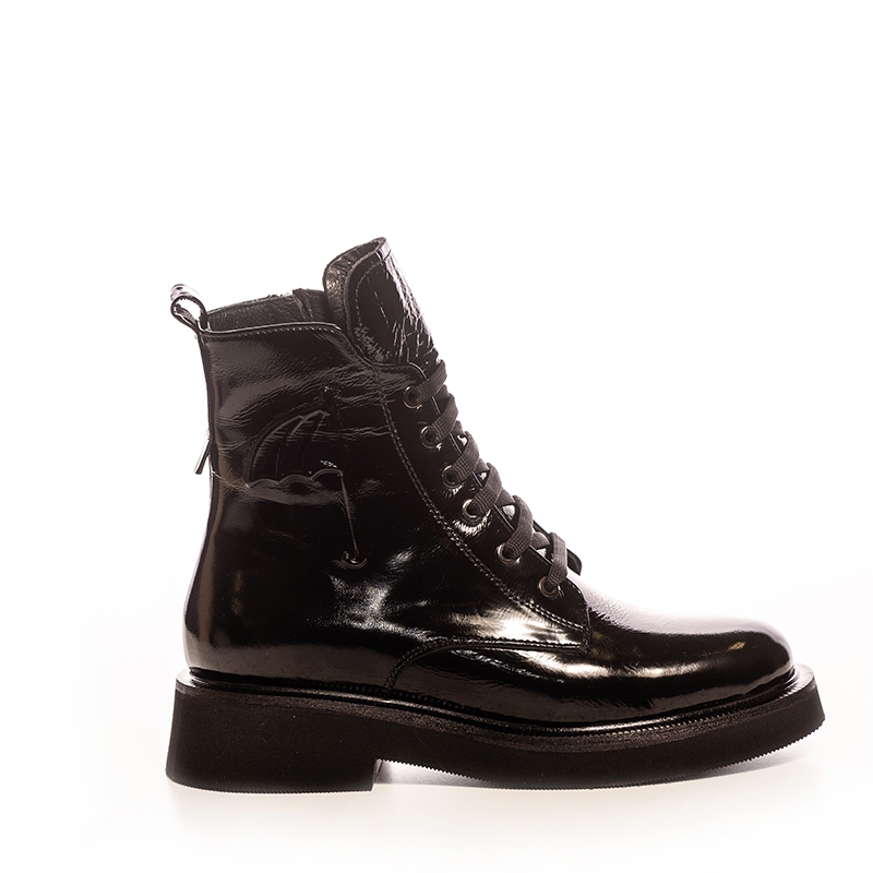 Черни лачени дамски боти с връзки и цип VOETTI - стил и комфорт!