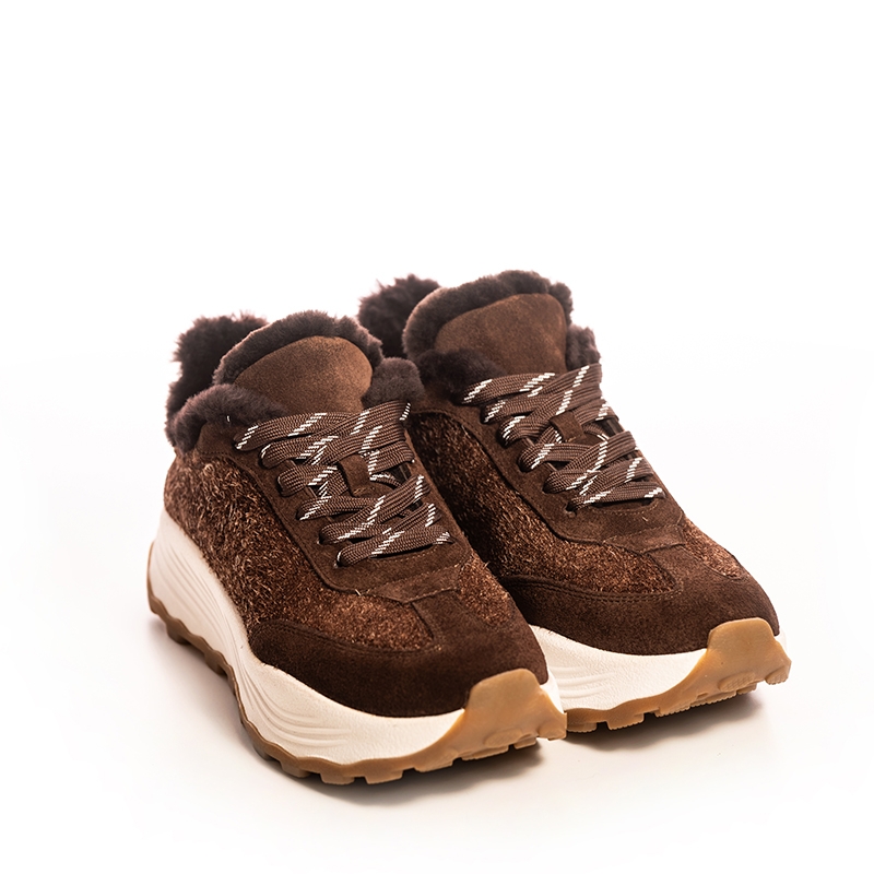 Тези маратонки са изработени от висококачествени материали, гарантиращи дълготрайност и устойчивост. Кафявият цвят придава елегантен и модерен вид, който лесно се съчетава с всякакви дрехи. Пухкавата подплата не само топли, но и осигурява допълнителен комфорт при всяка стъпка.