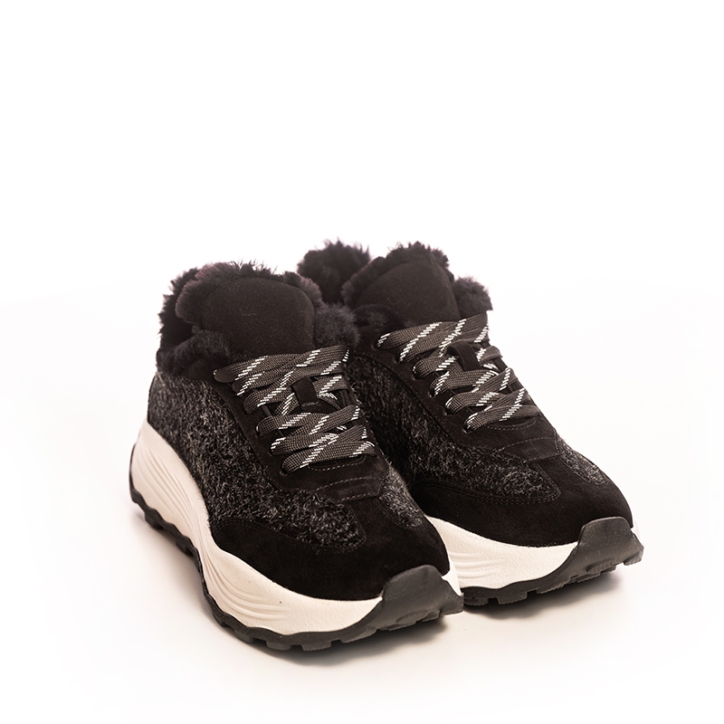 Външен вид и дизайн: Маратонките са изработени в класически черен цвят, който лесно се комбинира с различни дрехи и стилове. Ефектната пухкава подплата не само придава допълнителен чар, но и осигурява допълнителна топлина. Външният материал е изработен от висококачествени материали, които са устойчиви на износване и осигуряват дълготрайност.