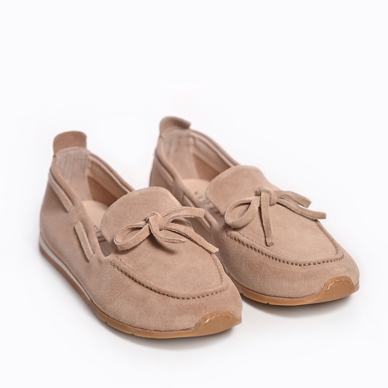 Елегантни бежови мокасини от велур с панделка - Voetti
