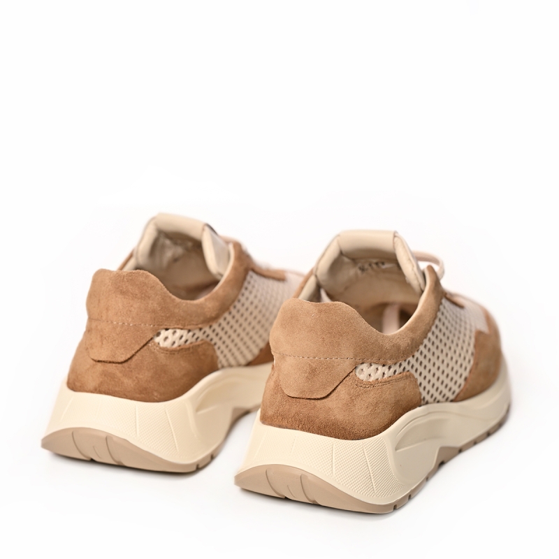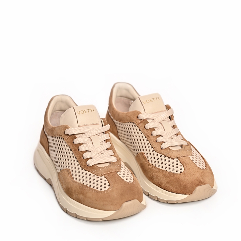 Дамски маратонки Voetti от велур и дишаща мрежа в бежово